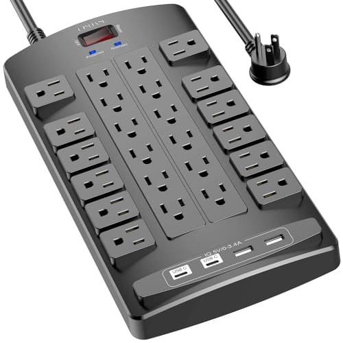 Featuring six AC outlets and three USB ports (one USB-C), this power strip boasts a 180° rotating plug and 900J surge protection, perfect for tight spaces and travel.